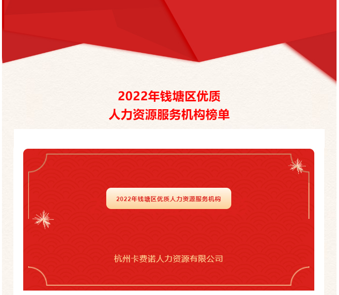 為進(jìn)一步促進(jìn)錢塘區(qū)人力資源服務(wù)業(yè)高質(zhì)量發(fā)展,發(fā)揮骨干企業(yè)在行業(yè)發(fā)展中的引領(lǐng)示范作用,根據(jù)《杭州市錢塘區(qū)關(guān)于聚焦人的現(xiàn)代化打造英才高地的若干舉措》(錢塘區(qū)委人〔2021〕1號)文件精神,22年區(qū)人社局委托浙江省人力資源服務(wù)協(xié)會星級機(jī)構(gòu)評定專家團(tuán)隊(duì),圍繞“基礎(chǔ)條件、市場競爭力、交易誠信及社會性、經(jīng)營管理、財務(wù)風(fēng)險、企業(yè)用工保障、部門配合、錢塘貢獻(xiàn)”等多項(xiàng)維度指標(biāo),對參評企業(yè)進(jìn)行綜合評估,挖掘出一批綜合實(shí)力強(qiáng)、服務(wù)能力專、行業(yè)影響力的優(yōu)質(zhì)機(jī)構(gòu),杭州卡費(fèi)諾企業(yè)服務(wù)有限公司被選為優(yōu)質(zhì)人力資源機(jī)構(gòu)之一!